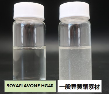 【产品优势】大豆由来异黄酮总量40%以上;产品溶解度极高;溶液澄清度极高。